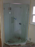 Frameless Showers can be installed using clips or U channel on the bottom with a clamp on the attached corners and an overhead clamp on the corners meeting the wall.